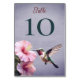 Añada un toque elegante a las mesas de recepción con esta tarjeta de números de mesa de pájaro morado y Boda de Hibiscus. El diseño de la tarjeta incluye un par de flores de hibisco rosa brillante con un colibrí gaviota. También hay material de boda adicional disponible con este diseño.