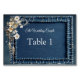 Añade un toque de elegancia a tus tarjetas de invitación personalizadas con gráficos de textura de denim adornados con encaje de crema blanca y joyas de disfraces para personalizar tu tema de papelería para las tarjetas de número y nombre de cada invitado.
