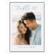 This wedding table card features a heartwarming photograph of two individuals sharing a joyful moment, set against a blurred beach backdrop. The design uses soft pastel colors, including light peach and muted blue, creating a harmonious and romantic atmosphere. Elegant cursive typography at the top indicates "table 12," while clean sans-serif text at the bottom provides space for personalization. The overall style is casual yet sophisticated, perfect for adding a touch of intimacy to your special day.