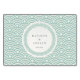 Un bonito diseño con un patrón repetido tradicional japonés de Seigaiha (literalmente "mar azul y ola"). Ideal para bodas en la playa. El patrón es muy ligeramente irregular y tiene una textura texturada/impermeable para evitar que parezca demasiado plana. La parte posterior de la tarjeta tiene una imagen circular opcional que contiene los nombres de Bride & Grooms y la fecha de boda. Tanto el círculo como el texto pueden editarse o eliminarse completamente. Se trata de una tarjeta plana para uso en los portatarjetas.