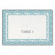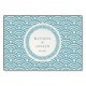 Un bonito diseño con un patrón repetido tradicional japonés de Seigaiha (literalmente "mar azul y ola"). Ideal para bodas en la playa. El patrón es muy ligeramente irregular y tiene una textura texturada/impermeable para evitar que parezca demasiado plana. La parte posterior de la tarjeta tiene una imagen circular opcional que contiene los nombres de Bride & Grooms y la fecha de boda. Tanto el círculo como el texto pueden editarse o eliminarse completamente. Se trata de una tarjeta plana para uso en los portatarjetas.