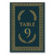 Elegante tarjeta de número de mesa con inspiración egipcia que presenta una corona de laurel dorada y borde de clave griega sobre un fondo azul marino profundo. El número es editable, lo que la hace versátil para cualquier número de mesa. Perfecta para bodas modernas y clásicas con tema egipcio. Coordina con tarjetas de asiento, menús y gráficos de asientos a juego.