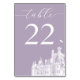 Bring a touch of sophistication to your special day with this elegant wedding table number. Features a white vintage illustration of a castle, with formal serif lettering, against a beautiful lavender purple backdrop. You can easily replace the castle image with a graphic of your preferred wedding venue. Replace the placeholder numbers yourself. Personalize this product with a variety of fonts, colors, and graphics, in Zazzle’s editor. For help & matching products, contact Jessica Amber via Zazzle messenger. Design © Jessica Amber, 2026.