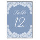 Tarjeta De Mesa Lazo blanco en número de tabla azul