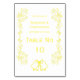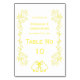 Diseño de campanas de números de mesa boda amarillo. Puede personalizar este número de tabla boda de color limón con sus propios detalles de boda. Si necesita ayuda para personalizar, póngase en contacto con nosotros a través del enlace de esta página. Bells desplazamiento diseño boda color amarillo personalizado número de tabla
