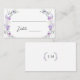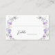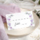 Elegant pastel botanical place cards, featuring lilac and purple watercolor flower blooms intertwined with lush greenery and eucalyptus leaves. Perfect for modern bridal showers, spring summer weddings, or other stylish nature themed celebrations.