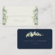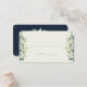 Una nata oscura de la marina/crema, caseta de invierno con nevadas pintadas a mano y eucalipto. La parte frontal tiene líneas de guía que le permiten escribir a mano el nombre/número de tabla o agregar una etiqueta impresa clara. La parte posterior de la tarjeta muestra los nombres de parejas felices y la fecha de boda, pero el texto es completamente editable. En mi tienda hay diseños alternativos de tarjetas y artículos de coordinación.