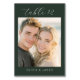 This elegant wedding table card features a soft, romantic photo area framed by a sophisticated dark green border. The design exudes warmth and intimacy with its gentle color palette and clean typography, perfect for capturing the joyous moment of your special day. Ideal for adding a personal touch to your reception decor, this card combines timeless style with customizable elements, allowing you to personalize it seamlessly for your celebration.