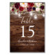 Tarjeta De Mesa Luces Florales Burgundy Madera Rústica para Boda