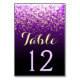 Luces esparcen en la mesa del boda púrpura del cielo número de tarjeta de lugar con luces amarillentas blancas y amarillas pálidas que brillan sobre el fondo de gradiente morado. Esta moderna, elegante y elegante invitación a las bodas forma parte de una colección o conjunto de bodas y es un personalizable perfecto para un boda de verano o de invierno.