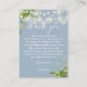 Un elegante eucalipto verde luces de cuerda botánicas polvorientas boda azul gracias tarjeta de recepción, personalizada con un mensaje especial y los nombres de la novia y el novio. Diseñado por Thisisnotme©