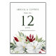 Elementos: Magnolias en acuarela con follaje verde y rojo, fuentes modernas. Colores: blanco, verde, rojo, carmesí. Temas: moderno, divertido, verano, destino, playa, palmeras, selva tropical, botánico, floral. Colección: Colección de Tarjeta de Mesa para Boda de Destino Tropical Magnolia Blanco Verde Rojo Tipo de producto: Tarjeta de mesa