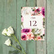 Elementos: marco floral con elementos botánicos de rosas, peonías y vegetación; fuente de letra animada y fuentes serif con orientación horizontal. Colores: fucsia, rosa intenso, púrpura, ciruela, mora, rosa, rubor, melocotón, blanco, blanco sucio, verde menta, verde musgo, verde salvia y verde cazador. Temas: moderno, clásico, inspirado en lo vintage, elegante, botánico, floral, jardín, bodega, boda al aire libre, primavera, verano, caprichoso. Colección: Marco Floral Elegante Rosa Rubor Púrpura Melocotón Blanco. Tipo de producto: Tarjeta de mesa