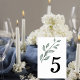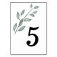 The delicate greenery illustration creates a graceful accent while the bold table number remains easy for guests to see from a distance. The balance of organic botanical elements and classic typography makes this design perfect for sophisticated yet understated wedding décor.