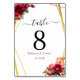 Elegante moda color burdeos rosa rojo y boda de oro falso carta número de la mesa con hermosas flores y hojas verdes. Una fusión de elegancia y encanto romántico. Estas hermosas invitaciones están en ricos tonos rosados y rojos. La caligrafía es elegante y moda y se puede personalizar fácilmente. Románticas y modernas invitaciones florales de boda con colores clásicos que nunca salen de su estilo.