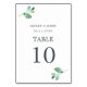 Elegante número mínimo de tabla boda con guion de moda fuera de color negro y un toque elegante de follaje de eucalipto verde sobre un fondo blanco. Simplemente agregue los detalles de su boda. Diseñado exclusivamente para usted por Happy Dolphin Studio. Si tiene alguna pregunta o petición, por favor contáctenos a happydolphinstudio@outlook.com. ¡Estamos encantados de ayudarle a hacer de su boda el día más hermoso!