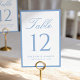 This light blue table number card brings a soft, airy elegance to your wedding reception tables with a crisp border that frames the design without overpowering it. Flowing calligraphy at the top introduces the table number, which is displayed prominently in serif type, with the couple’s names and wedding date shown beneath for a personalized touch. The gentle blue hue is ideal for spring, summer, and coastal weddings seeking a refined yet fresh look. This card measures 3.5"x5". Edit each table number individually and add them to your cart to ensure a smooth ordering process.