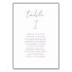 This elegant modern wedding table number card features the word "table" in mauve handwriting script on a white background. Add the names of your guests who are assigned to each table in mauve sans serif font.