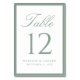 Guide guests to their seats with this elegant sage green table number card, designed with a border that brings a fresh and refined touch to your wedding reception décor. “Table” appears in sage green calligraphy at the top, followed by a large serif table number for easy visibility. The couple’s names and wedding date are shown below, creating a personalized finishing detail that coordinates beautifully with modern garden, estate, and outdoor weddings. This card measures 3.5"x5". Edit each table number individually and add them to your cart to ensure a smooth ordering process.
