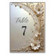 Tarjeta De Mesa Modern White Flowers Pearls Table Number