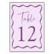 Añada un toque elegante a su celebración boda con estas tarjetas de mesa boda Wavy Frame Moderno. El diseño retro muestra "Table" en un guión morado escrito a mano con el número de tabla que se muestra a continuación. Un borde marrón violeta oscuro rodea el número de la mesa, contrastando con un fondo morado claro. El diseño se repite en la parte posterior. Para solicitar las tarjetas de la tabla: agregue cada número a su carrito individualmente y desprotéjase cuando haya terminado. No realizar el pedido por cantidad o recibirá múltiplos del mismo número.