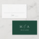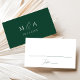 Las tarjetas bodas modernas incluyen un guión de caligrafía verde oscuro sobre un fondo blanco. En la parte posterior de las tarjetas de lugar verde se muestran las iniciales de su monograma con la fecha de su boda que se muestra a continuación. Las elegantes tarjetas de escritura son perfectas para recepciones de bodas modernas, cenas de ensayo y otros eventos especiales.
