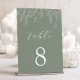 Lleva a sus huéspedes a sus mesas con un encanto sofisticado utilizando este número de mesa personalizado, con elegantes productos botánicos dibujados a mano. El frondoso fondo verde sabio da una serena tela al delicado follaje blanco, creando un acento armonioso y acogedor para la recepción. Este exquisito arte botánico aporta un toque orgánico, realzando a la perfección su decoración boda con una elegancia sobria.