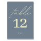 Monograma azul turbio Boda moderno mínimo Número de tabla