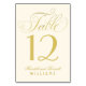 Cada tarjeta de número de tabla debe ser personalizada y agregada individualmente al carrito de la compra. Elegante diseño de marfil blanco suave / claro y dorado presenta una bella escritura de escritura con un gradiente dorado y un monograma boda que aparece con el número de tabla en ambos lados de la tarjeta (diseño de dos caras).