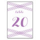 Tarjeta de número de mesa Boda de decoración moderna, sencilla y elegante, con un diseño Art Déco de rayas cruzadas en violeta. Esta tarjeta de mesa clásica se puede personalizar fácilmente con los detalles de su boda. Para obtener más opciones de personalización, haga clic en el botón Personalizar.