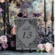 Eleva tu boda gótico con un número de mesa boda inspirado en Victoria que exuda elegancia y misterio intemporal. Diseñado para parecerse a un enlace de libros antiguo, este impresionante diseño presenta un diseño intrincado de color negro y gris lacado, que evoca el encanto de una época pasada. Dejen que su historia de amor se desarrolle con una tarjeta de número de mesa tan inolvidable como su día. Creado por Simply Farmhouse Press.