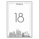 Una elegante pero mínima tarjeta de boda para un matrimonio que tiene lugar en la maravillosa ciudad de Nashville, Tennessee. Cuenta con un número de tabla simplificado que descansa sobre una versión estilizada del paisaje único de la popular ciudad.