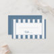 This place card features a classic and elegant design with vertical blue stripes framing a clean, white center. The color palette of soft blues and crisp whites creates a fresh and inviting atmosphere, perfect for weddings or formal events. The minimalist layout emphasizes sophistication, while the customizable space allows for personalization. Its timeless style makes it ideal for enhancing table settings with a touch of refined charm.