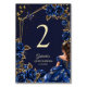 Tarjeta De Mesa Navy Blue Golden Tiara Roses Quinceañera