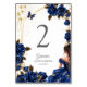 Tarjeta De Mesa Navy Blue Golden Tiara Roses Quinceañera