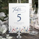 Watercolor floral wildflower field with modern script in navy blue and burgundy red, elegant and sophisticated, great table number cards for rustic fall wedding, classic garden wedding, and boho winter wedding.