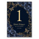 Navy gold Quinceanera celebration table number cards. Features, script font, gold butterflies, watercolor roses and tiara. Perfect for an elegant princess style glam celebration. Personalize with your own details. Printed Zazzle invitations or instant download digital printable template.