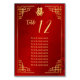 Esta tabla de bodas china incluye un marco tradicional chino y un símbolo artístico de doble felicidad dorada sobre un brillante fondo rojo rubí. Con cuadros de texto para agregar una lista de nombres de invitados.