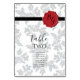 Este diseño presenta un elegante patrón de hoja vintage y una imagen personalizada de sellado de cera. El fondo con motivos de la hoja gris de damasco contrasta con la cinta negra y el sello de cera roja. La combinación de tonos grises, rojos, negros y blancos crea un estilo refinado, moderno y de moda. Elegante diseño de números de mesa de boda con elementos modernos. La sencilla configuración de la tipografía le da un estilo distinto. También hay disponibles invitaciones de boda coincidentes y otros artículos de papelería. Personalizar el número y compra cada número de tabla individualmente según cuántos números de tabla necesite.