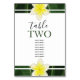 Este diseño presenta flores amarillas Frangipani / Plumeria. Un diseño tropical enmarcado con elegancia por flores frangipani amarillas y vegetación de hojas. El número de tabla se enfatiza con el color verde correspondiente de las hojas. Diseño de números de tabla boda tropical con elementos modernos. También hay disponibles invitaciones de boda coincidentes y otros artículos de papelería. Personalizar el número y compra cada número de tabla individualmente según cuántos números de tabla necesite.