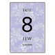 Elegante número de mesa de boda de Navidad con copos de nieve, en el que se puede cambiar la imagen, nombres y fecha.
