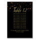 Haz que la recepción de tu boda sea hermosa con estas tarjetas de número de mesa. Diseñadas como parte de nuestra suite Boda Shimmering Sparkles, cuentan con un diseño elegante y original de estrellas rosa y doradas con texto dorado sobre un fondo negro. Estas tarjetas incluyen asientos para que sus huéspedes puedan encontrar la mesa correcta.