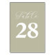 Este diseño cuenta con una tarjeta boda de número de tabla con un guión elegante, sencillo, caligráfico, una tipografía minimalista y sencilla, perfecta para una recepción nupcial o cualquier evento de un color sólido verde sabio.
