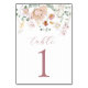 Tarjeta De Mesa Número de tabla de flores rosadas florecientes