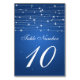 Elegante diseño de "número de tabla" de boda con romántico esparkling Lines azul zafiro, nombres personalizados y texto de fecha. Impresione a su familia y amigos con este diseño elegante y moderno. ¡personalizable total! Fácil de usar y fácil de personalizar.