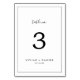 Este número de tabla minimalista es perfecto para un boda sencillo. El moderno diseño romántico presenta una tipografía clásica en blanco y negro, acompañada de una caligrafía rústica y elegante con un estilo de letra a mano vintage. Personalizable de cualquier color. Mantenga el diseño simple y elegante, tal como está, o lo personaliza añadiendo sus propios gráficos y obras de arte. La tarjeta se imprime en la parte delantera y trasera (doble cara). Los elementos se imprimen exactamente como aparecen en la pantalla cuando se agregan al carrito, por lo que se personaliza y se agrega cada número de tabla que se necesita a cada carrito individualmente.
