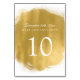 Elegante diseño de "número de tabla" de boda con aspecto de pintura dorada y texto de número de tabla personalizado.