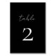 Tarjeta numérica mínima de tabla de script. Guión blanco sobre fondo negro. Parte de una colección de bodas.