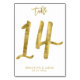 Tarjetas de número de tabla boda - Número 14 - con efecto de Relieve metalizado dorado (imitación, impresión como imagen) y texto de personalizable - puede añadir el nombre de la novia y del novio y la fecha de boda impresa en fondo blanco