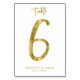 Tarjetas de número de tabla boda - Número 6 - con efecto de Relieve metalizado dorado (imitación, impresión como imagen) y texto de personalizable - puede añadir el nombre de la novia y del novio y la fecha de boda impresa en fondo blanco